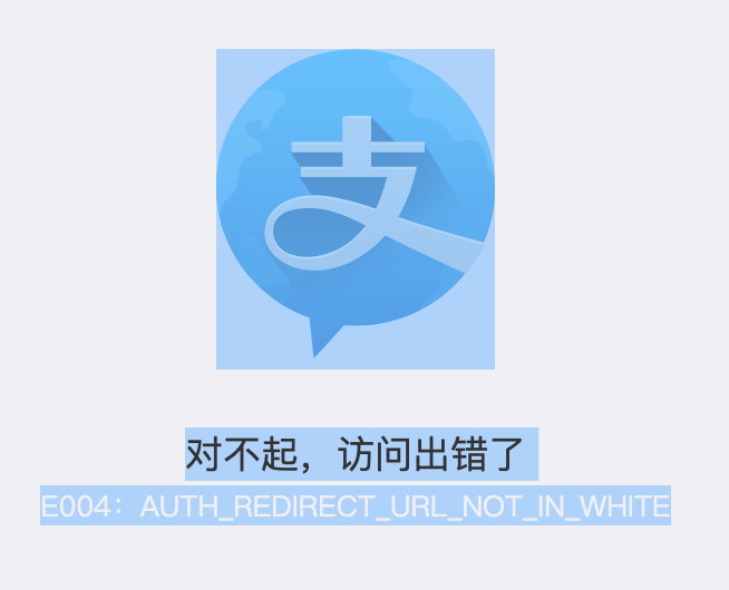 接入支付宝h5支付过程中遇到授权失败的问题。根据官方文档拼接好授权url后,访问出错,提示”对不起,访问出错了”,如下图